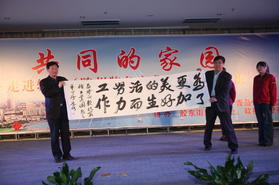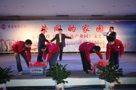 在演出期間,青島市總工會的領導向軟控員工贈送了書箱。據(jù)了解,青島總工會開展的以提高新市民整體素質(zhì)為主要內(nèi)容的“共同的家園”主題系列活動,已連續(xù)五年開展了“送演出、送書箱、送講座、送電影、送活動”為主要內(nèi)容的“五送”活動,走進廠礦企業(yè)、建筑工地,慰問新市民10余萬人,極大地豐富和充實新市民的精神文化生活。