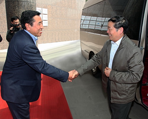 4月28日,國(guó)家工業(yè)和信息化部黨組成員、副部長(zhǎng)楊學(xué)山一行在青島市委常委、副市長(zhǎng)牛俊憲,四方區(qū)委書記紀(jì)敏,四方區(qū)區(qū)長(zhǎng)張杰等相關(guān)領(lǐng)導(dǎo)的陪同下,到國(guó)家輪胎工藝與控制工程技術(shù)研究中心(簡(jiǎn)稱“中心”)參觀考察。中心主任、公司董事長(zhǎng)袁仲雪,中心副主任、副董事長(zhǎng)張焱等領(lǐng)導(dǎo)熱情接待了楊學(xué)山一行。