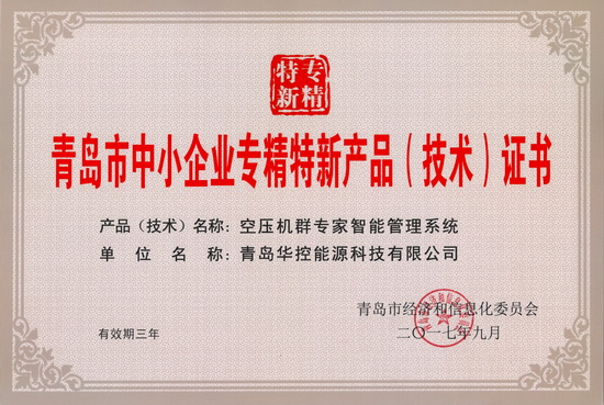 同時(shí),華控能源自行研發(fā)的適用于用能企業(yè)的空壓站節(jié)能監(jiān)控管理系統(tǒng)也順利通過復(fù)審,再次被認(rèn)定為青島市專精特新產(chǎn)品。