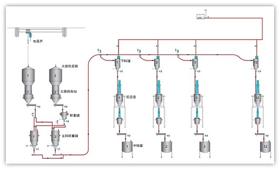 原料輸送:可實現大批量、遠距離、高效率輸送;快速準確的取料并輸送到指定位置;管道封閉輸送有效避免污染。